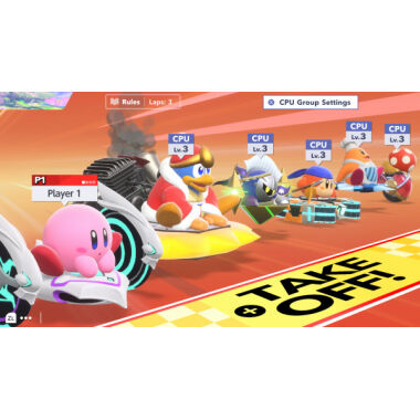 Vyberte si jezdce, vozidlo a připravte se na závod! Utkejte se s ostatními soupeři v divokých arénových bitvách nebo v rychlých závodech na zemi i ve vzduchu. Použijte tlačítko Boost Charge k brzdění a lepšímu zvládání zatáček, zatímco se snažíte dosáhnout maximální rychlosti. Naplněním ukazatele Boost Charge při driftování v zatáčkách a následným jeho uvolněním spustíte explozivní zrychlení! Na výběr bude celá řada jezdců: Kirby, Meta Knight, King Dedede a Magolor z Kirby’s Adventure Wii. Ze strojů dostanete na výběr třeba z následujícího: Warp Star, Wheelie Bike, Chariot a mnoha dalších. Každé vozidlo se ovládá jinak a každý jezdec má své vlastní statistiky a speciální schopnosti – mohou také přebírat Copy Abilities svých nepřátel, což jim zajistí výhodu v boji.