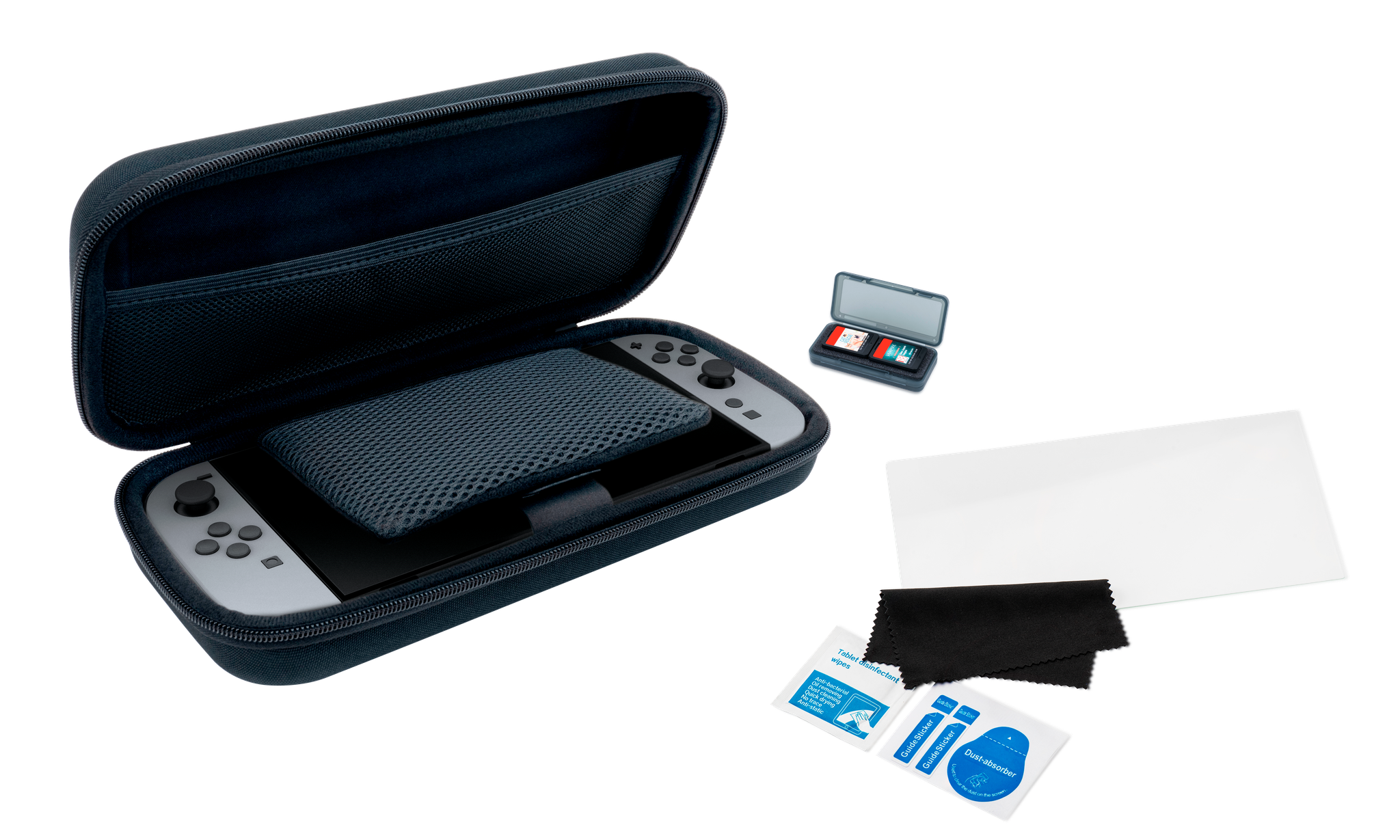 • Tato sada příslušenství od společnosti Nacon určená pro herní konzoli Nintendo Switch 2 obsahuje pevné přepravní pouzdro, tvrzené ochranné sklo a praktické pouzdro pro uložení dalších herních karet.